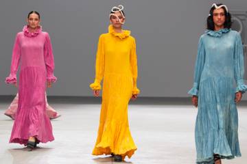 Las telas, rugosas y livianas, como lino y algodón dieron vida a vestidos amplios de caída suelta y de largo a ras de piso. Pantalones, shorts, faldas y blusas holgadas predominaron entre los looks formando figuras cómodas y frescas.